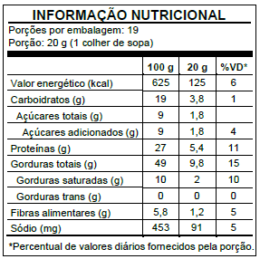 ALÉRGICOS: CONTÉM AMENDOIM. PODE CONTER LEITE, AVELÃ E PISTACHE. NÃO CONTÉM GLÚTEN.
